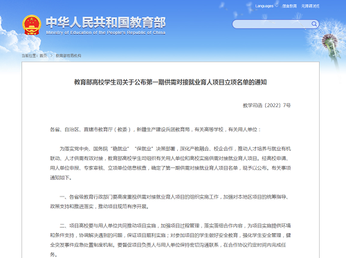为落实党中央、国务院“稳就业”“保就业”决策部署,深化产教融合、校企合作,推动人员培养与就业有机联动、人才供需有效对接,教育部高校学生司组织有关用人单位和高校实施供需对接就业育人项目。