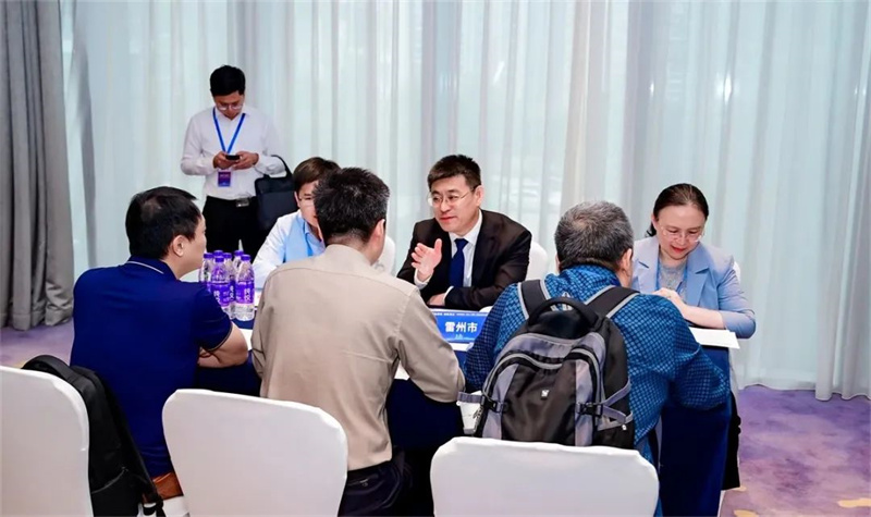 会议邀请100多家制造业企业负责人和代表参加。雷州市市长、湛江奋勇高新区管委会主任、湛江市投资促进局局长分别上台推介,现场氛围热烈,意向企业纷纷来到“一对一”洽谈室展开精准对接。