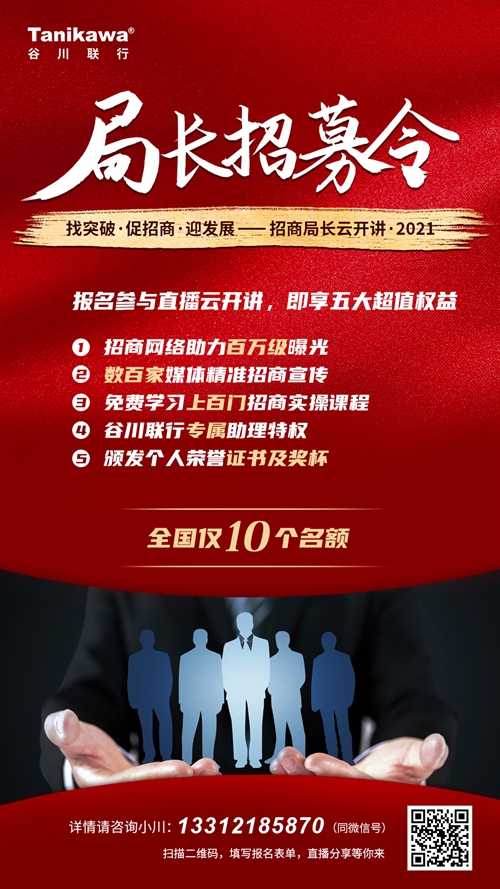 即日起,谷川联行正式向全国招商局长发出招募令,仅十个名额!