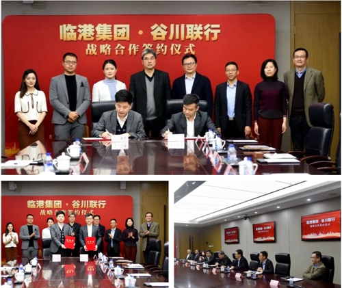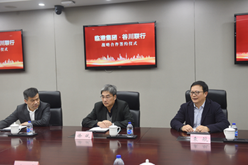 临港集团副总裁徐斌,工投公司董事长袁航、总裁吴丛宏,谷川联行董事长徐佳、副总裁董川川出席签约仪式。工投公司总裁吴丛宏,谷川联行董事长徐佳代表双方签署战略合作协议。