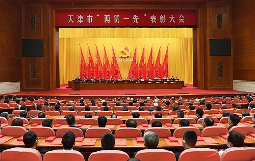 6月16日上午,天津市“两优一先”表彰大会隆重召开。全市优秀共产党员、优秀党务工作者、先进基层党组织和荣获“光荣在党50年”纪念章的老党员同志们汇聚一堂。伴着激昂的旋律和此起彼伏的掌声,一张张自信的脸庞见证着每一个先进个人和先进集体的光荣时刻。