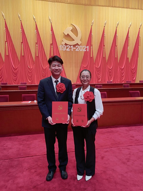 (表彰大会结束后,徐佳同志和上级中北镇党建办优秀党务工作荣誉获得者薛宏霞同志合影留念,两位先进代表在这个特别的日子里留下了珍贵的纪念。)