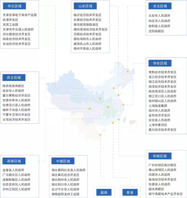 ▲ 多年来,谷川联行与全国多个区域的政府、园区保持着深度合作关系,直抵产业发展的最前线。(图为谷川联行的部分重点合作案例)