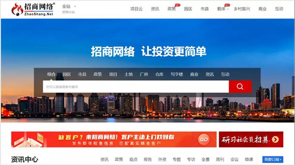 招商网络是提供招商引资、项目服务、宣传推广、信息交流等综合服务的门户网站,月浏览量超过160万,日均有效项目对接超过700个。