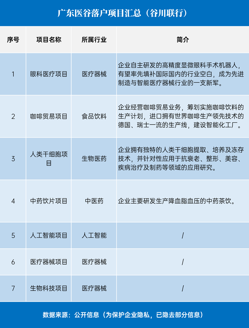 合作至今,谷川联行聚焦产业最前沿,已相继促成多家优质企业落户广东医谷,涵盖眼科手术机器人、人类干细胞技术、中药饮片、生物科技、人工智能等领域。