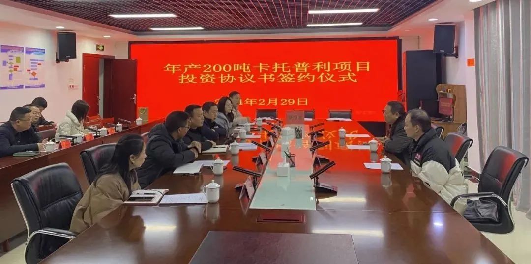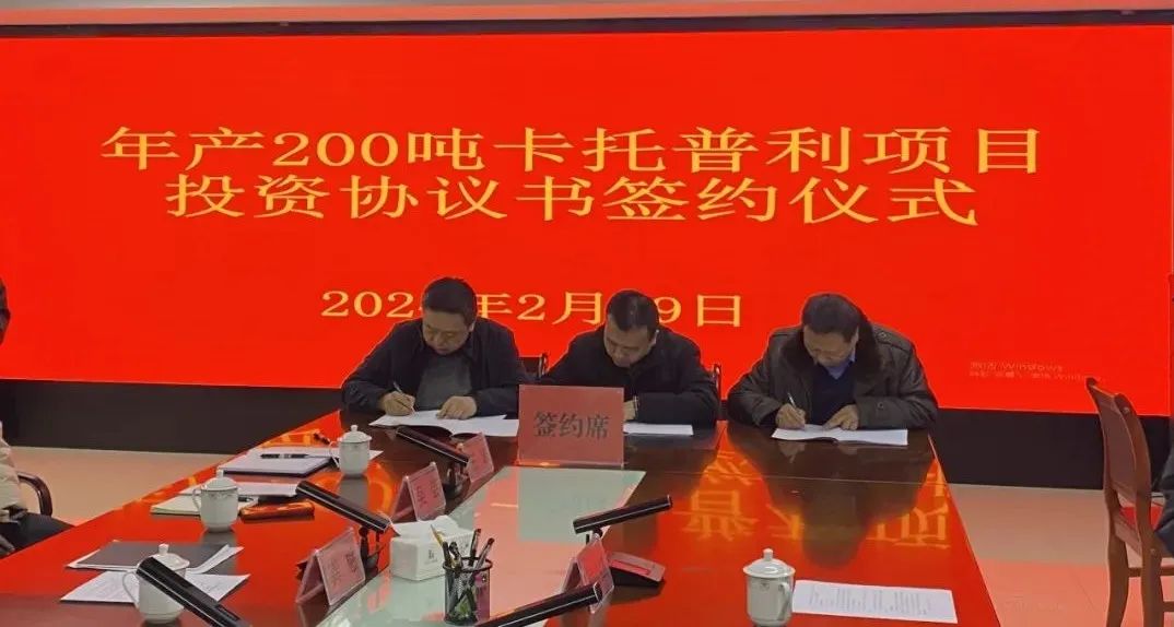 年产200吨卡托普利项目顺利落地,项目拟规划约39亩地,全面建成后年产值达12000万元。