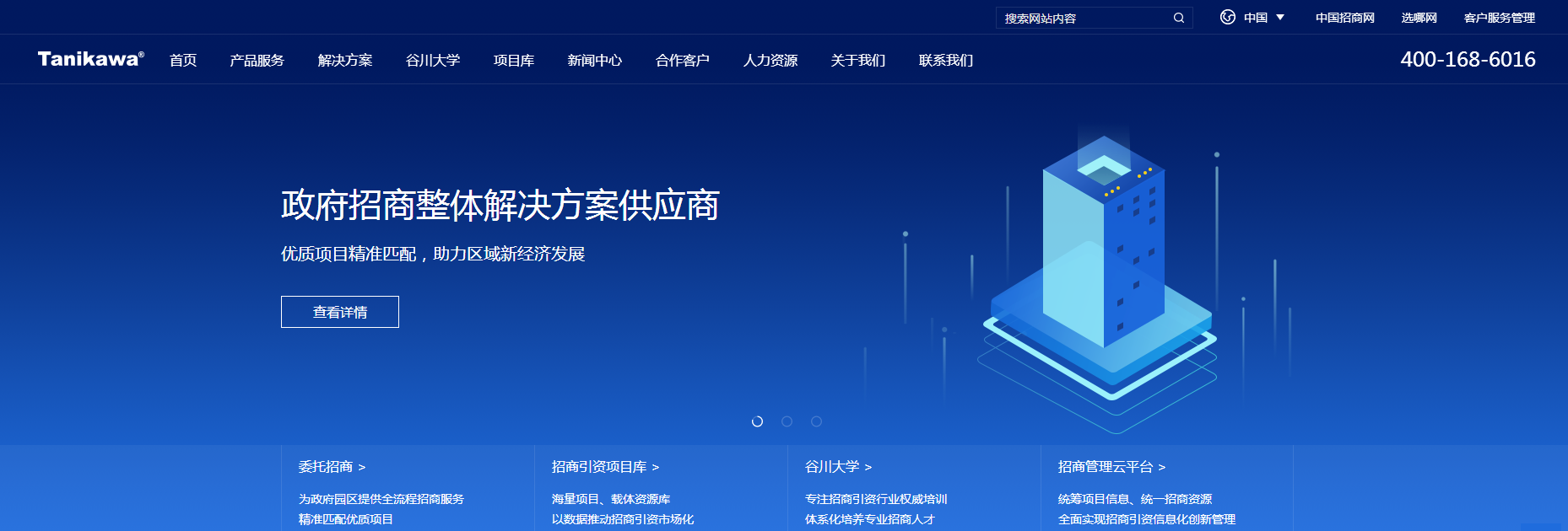传统招商中,总会遇到项目资源不足、宣传推广无门等问题。谷川联行推出的“6大解决方案+14项产品服务”,均是从多年的招商实战经验里萃取而来,并经过深刻的洞察和反复实践,形成了成熟的招商服务体系,能够真正帮助政府园区解决招商问题。