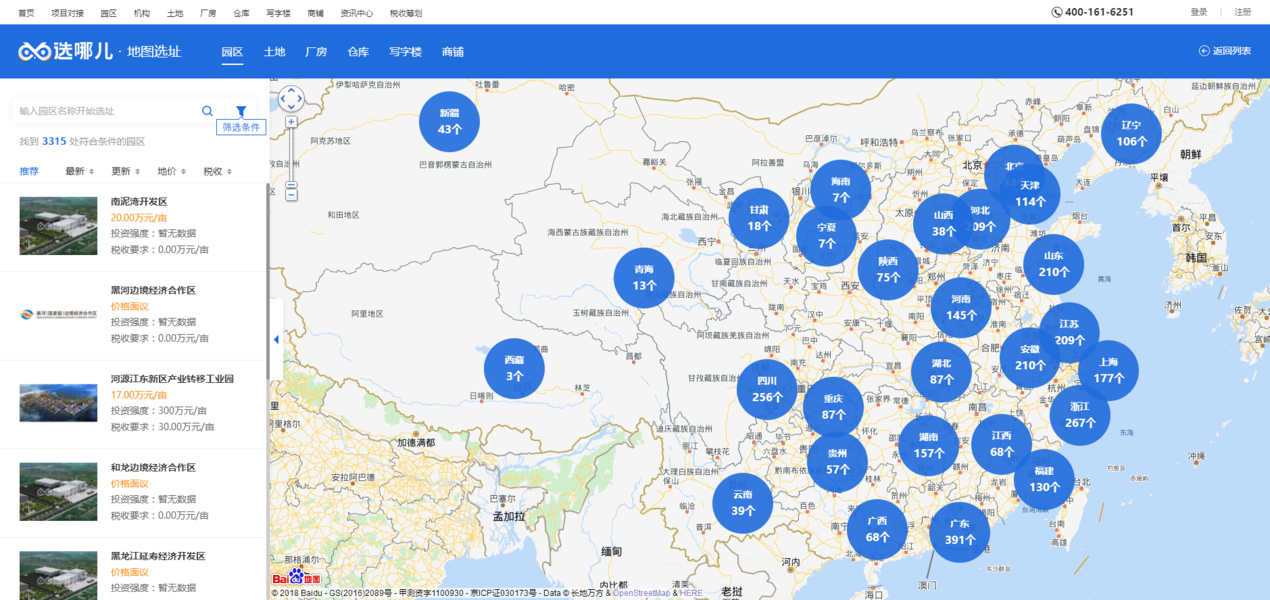 选哪儿拥有贴近企业需求的强大功能,譬如地图精准选址。超过6000家政府园区信息与数据、3万余家载体资源直观展现,选哪儿的选址大数据,能够帮助企业离心仪的投资地更近一步。
