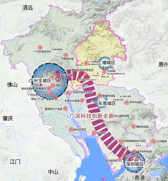 增城是广深科技创新走廊的重要节点,是粤港澳大湾区重要的交通枢纽、创新高地和先进制造业重要增长极,更是企业拓展南中国、东南亚市场的战略要地。近年来,增城坚定不移走经济发展质量和效益“双提升”道路,加快构建现代化经济体系,已经形成了国家级增城经济技术开发区、广州东部交通枢纽中心商务区、广州技术教育城、健康服务产业带、北部生态产业区的产业布局,以先进制造业和现代服务业双轮驱动,逐步打造新一代信息技术、汽车及新能源汽车、金融科技三大千亿级产业集群格局。