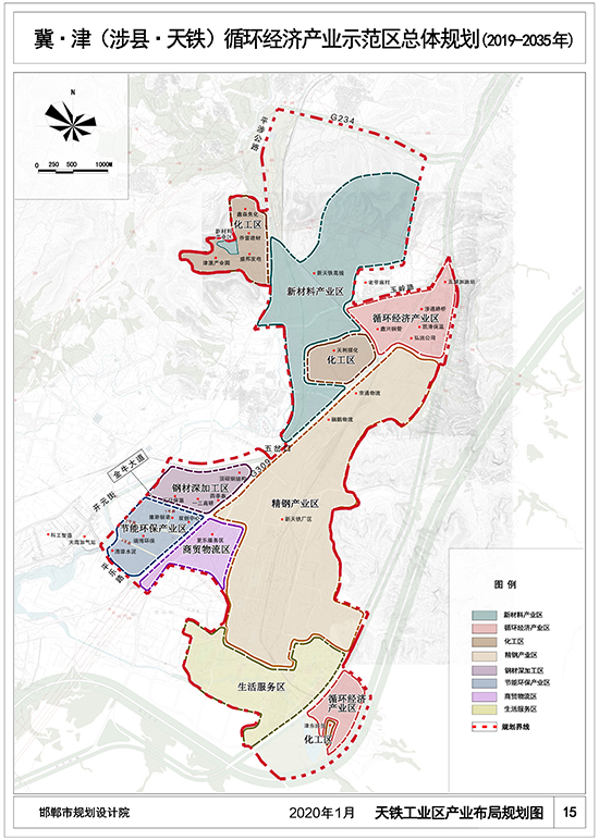 冀津园区规划面积为50平方公里,包括三个分区,一是天铁精钢工业区,是冀津园区核心建设区域,规划控制面积21平方公里,重点发展精品钢材、住宅产业化、先进制造业、节能环保等产业;二是龙西工业区,规划控制面积18平方公里,重点发展循环低碳、短流程铸造、精细化工、装备制造等产业;三是神头建材工业区,规划控制面积11平方公里,重点发展绿色建材、新型材料等产业。
