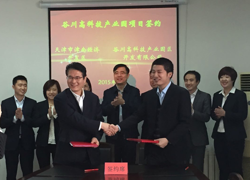 3月12日,谷川联行与天津市津南经济开发区举行谷川高科技产业园项目签约仪式。天津市津南区区委常委、副区长毛劲松、津南开发区管委会主任张顺弟、副主任刘家萍、赵海玲、创意中心主任王桂玉,谷川联行董事长徐佳、总裁汤一弟、总经理贾立宇、雍大成等出席签约仪式。