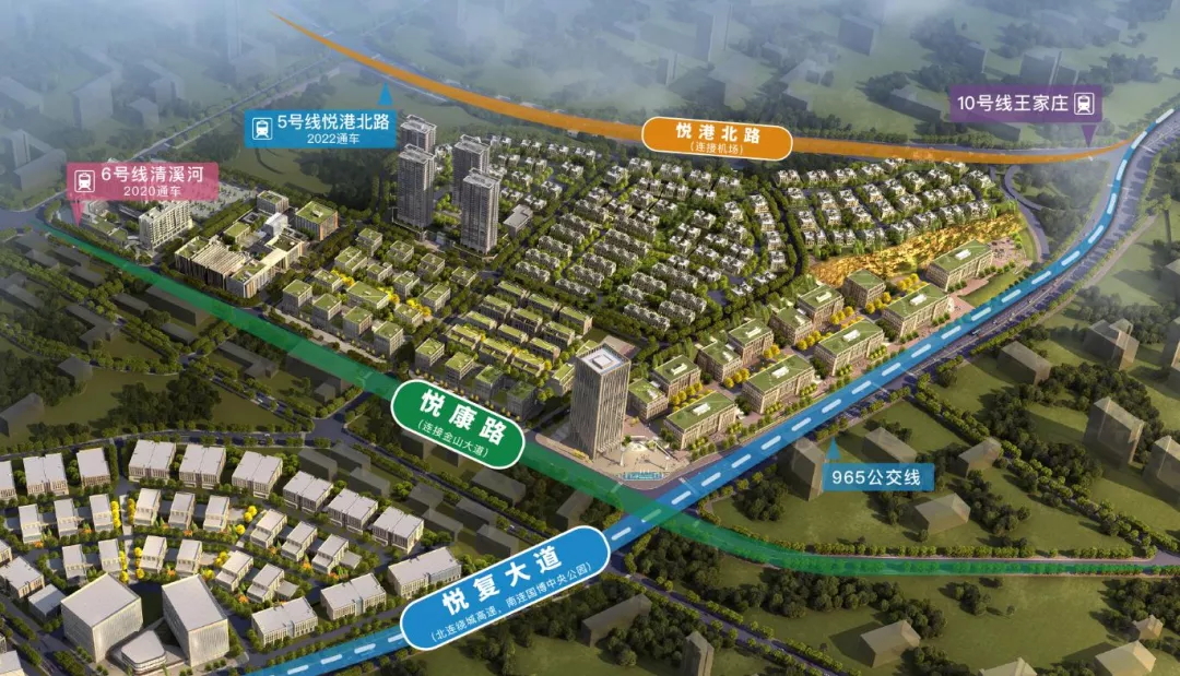 金科两江健康科技城位于重庆两江新区悦来、水土两大组团交界处。“三横三纵四轨”交通体系,15分钟到达江北机场,30分到达火车北站。