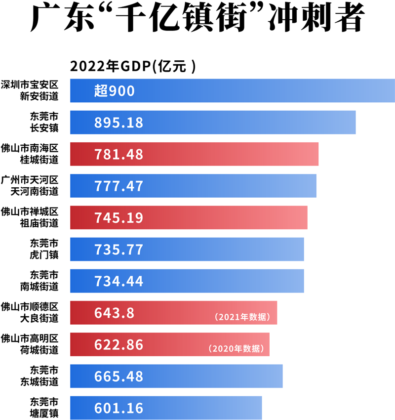 经初步统计,珠三角的“准千亿”镇街超过10个,分布在广州、深圳、佛山、东莞等地。