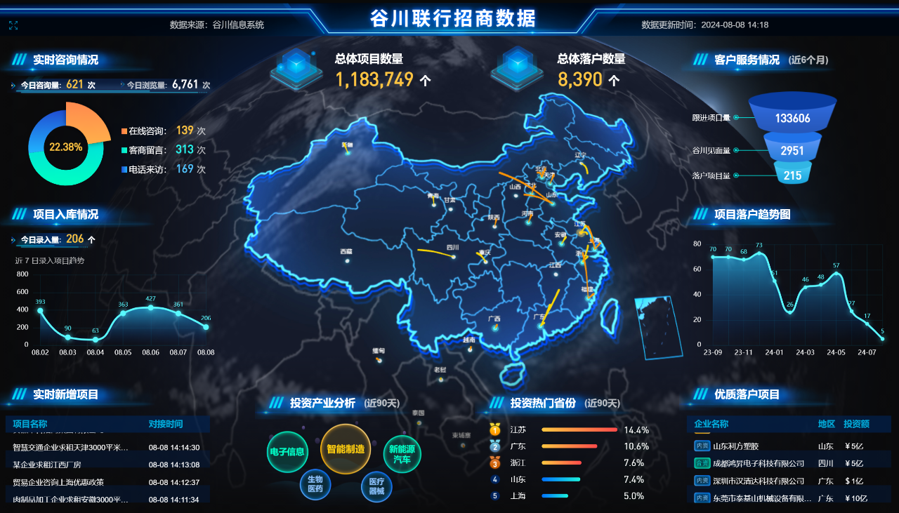 借助“互联网+大数据+招商”优势,依托百万级真实项目库资源,以敏锐的市场洞察力,精准识别和引荐大项目、好项目。