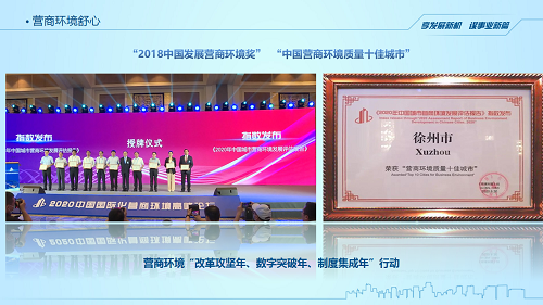 徐州有中国发展营商环境奖,也是中国营商环境十佳城市。现在硬件环境各个地方应该说做的都普遍不错,有长足的进步。但是我觉得软件环境是一个地方要突破的地方,要不断改善的地方。