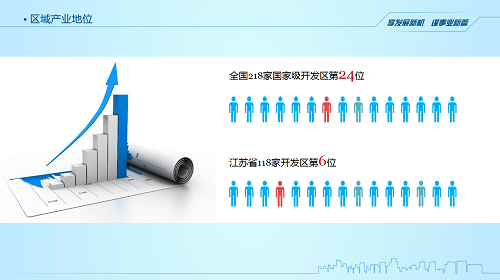 第二个是讲我们开发区目前的地位。目前我们在全国218家国家级开发区里面居于24位,在江苏省我们排到第6位。我们个人觉得这个成绩跟我们的城市地位还是比较匹配的,跟我们的努力也是相当的,当然我们也希望今后的5年能够更加的争先进位,这是大家共同的奋斗目标。