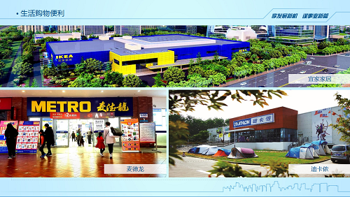 因为我们的很多园区一提工业园,大家都觉得是乡下,是要开车走好多公里才能够买到东西。那么对于产业环境要求比较高的企业,就会有生活购物方面的考虑,我把这些他们可能产生疑问的,所有的篇章所有的内容我都通过PPT的形式展示出来了,那么他对园区自然而然就会有一个很好的印象和信任感。