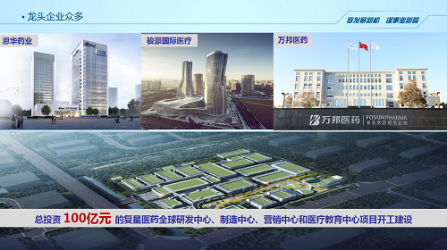 在这里面我们也把龙头企业进行了一个标注,像复星医药在我这里投资100亿,要建设全球的研发中心、制造中心、营销中心和教育医疗中心。这样一个龙头企业都在这里了,可能跟复星关联的或者说以复星为参照标的的这些企业,也会增强对地域发展的信心。