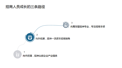 我们需要每一个招商人员选择一个细分的专业,在一个细分的领域做深入的研究,即同时积累专业的人脉,熟悉专业领域的发展动向和发展规律。这样行业的优质企业跟我们交流的时候,他才会对我们当地感兴趣。他还觉得跟我们聊得通,讲得会。