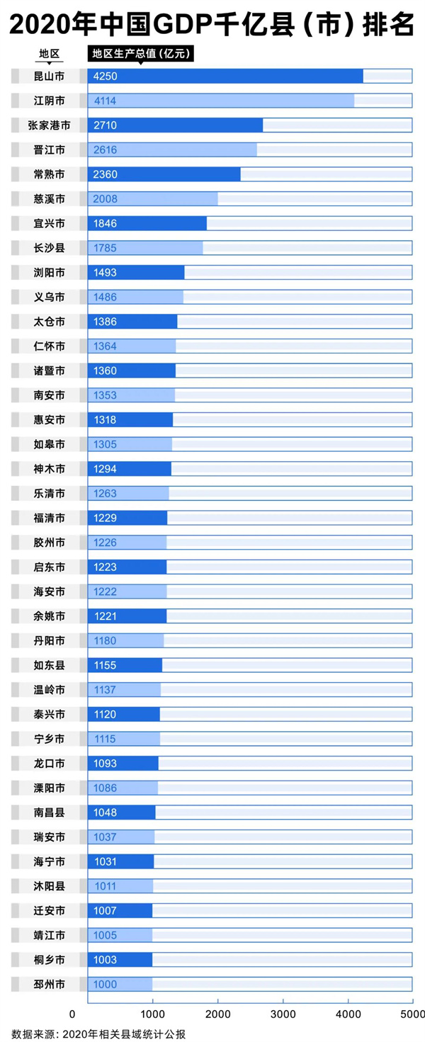 在我国,县域的地位举足轻重:1800多个县和县级市(不包括市辖区)的经济总量占到了全国的40%。不少县已经迈入了千亿俱乐部,有的更是富可敌省。数据显示,2020年,全国千亿县增至38个,经济体量约5.7万亿元,以不到0.47%的国土面积创造了全国5.66%的GDP,堪称经济快速发展的引擎。