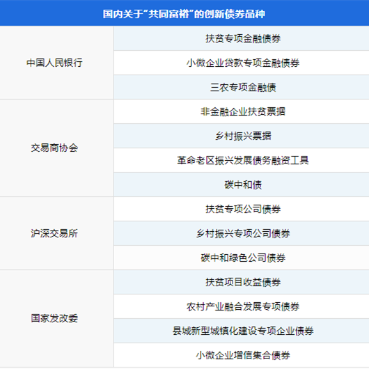 “共同富裕”概念的内涵较为丰富,扶贫、乡村振兴、城镇化、三农、小微等都可以纳入其中,对应的创新债券品种也比较多。谷川联行借本文对以上各类债券的基本情况略作梳理。