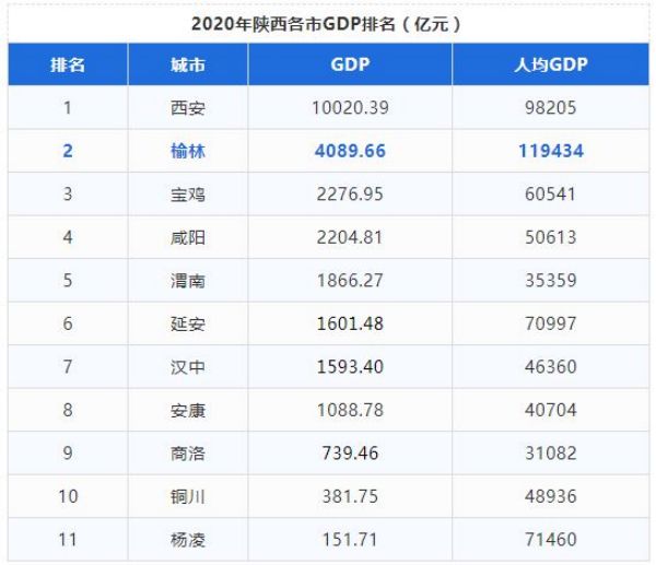 但是翻开陕西的GDP排行榜,延安只能排在中游。反倒是榆林这座不太显眼的城市,经济总量常年位列省内第二,人均GDP甚至超过了西安。
