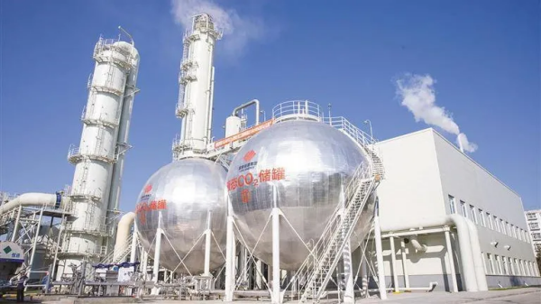 ▲ CCUS是通过捕集过量排放的二氧化碳,循环利用后再将其注入地下封存,达到人工干预下碳循环平衡的一种负碳技术。图为榆林神木市的国华锦界电厂CCUS示范项目。