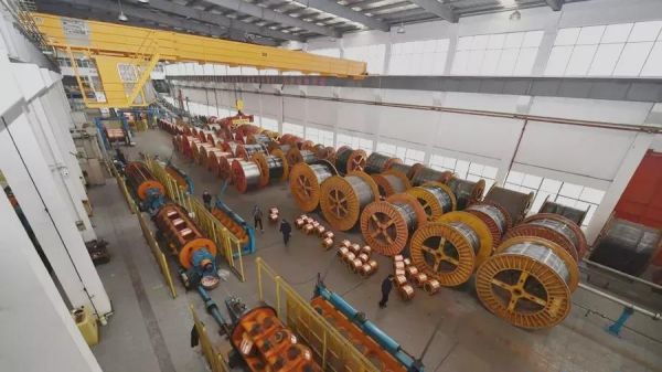 ▲ 曙光电缆的车间内,工人正在生产高压电力电缆、超高压电力电缆和特种电缆。