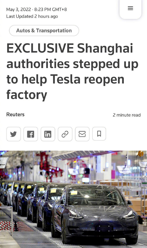 开头提到的那封感谢信中,详细描述了临港集团是如何安排公共汽车将6000名特斯拉工人及其供应商运送到工厂,并对该公司进行消毒,以便工厂尽快进入“闭环”生产的。