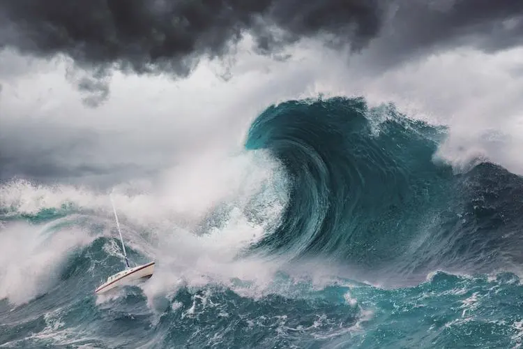 “在海洋上也同样存在着一种能吞噬一切的巨浪。当无数不同方向的小波浪汇集在一起,突然强力撞袭礁石或岸壁,可能会形成近百英尺的水墙。”