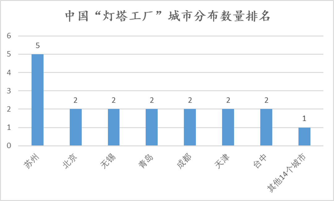 2021年,苏州新增3家“灯塔工厂”,至此,苏州“灯塔工厂”总数量达到了5家,约占全国的1/6,且位居全国首位,这一成就无疑成为了苏州制造业一块闪亮的“金字招牌”;