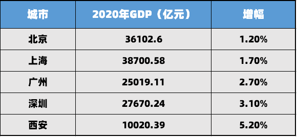 2020年,西安GDP实现万亿元的新突破,增速5.2%,成功跻身万亿俱乐部。纵观这一年全国的GDP数据,深圳以3.1%的增速在北、上、广、深四大城市中领跑,而刚刚突破“万亿大关”的西安,经济增速就达到了5.2%,由此成为西北地区首个GDP万亿城市。
