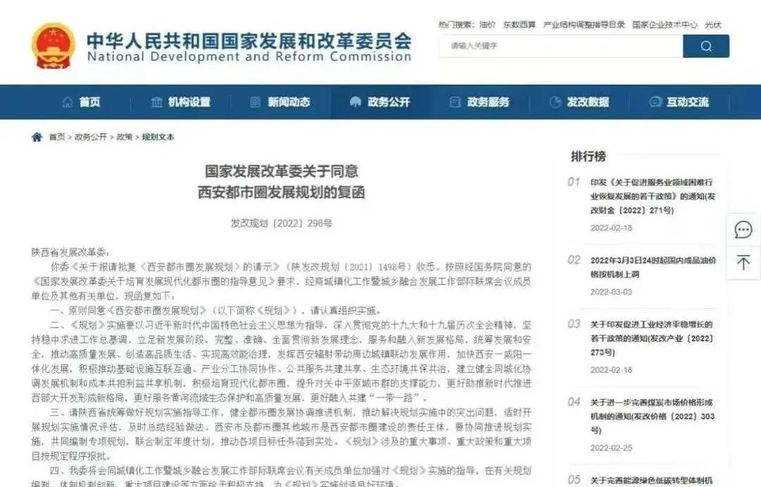 3月21日,国家发改委官网正式公布“西安都市圈发展规划”获批。