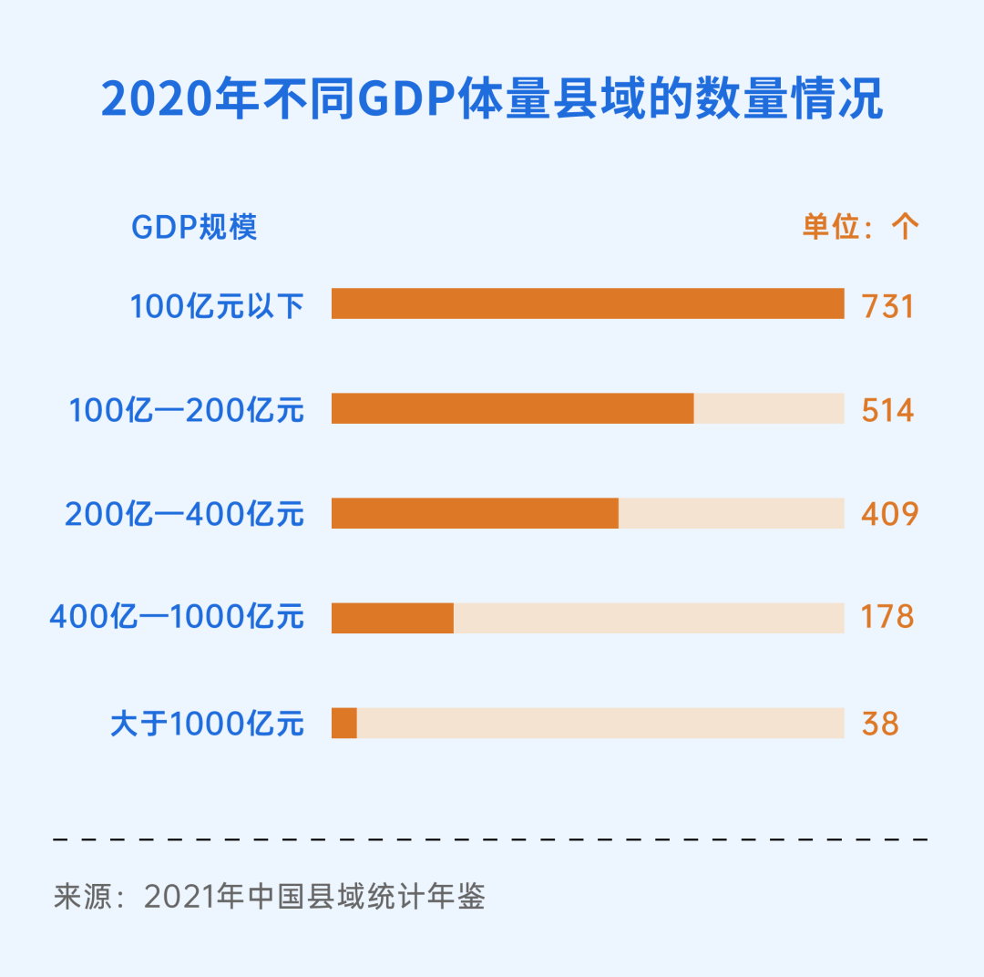 ▲ 2021年,千亿县增至43个,但仍然只是县域经济的很小一部分。