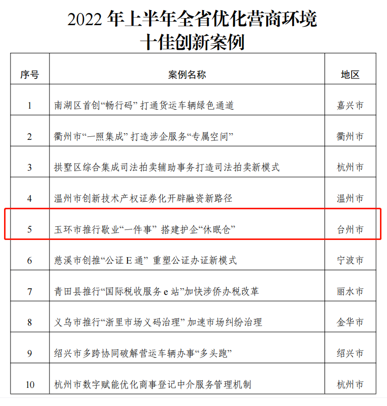 但浙江愿意把玉环市“歇业一件事”的案例评为十佳,本身就表明了一种态度。