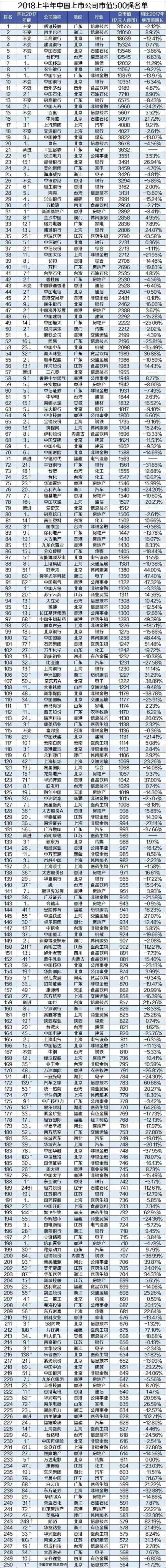 据统计,截至6月30日,中国一共有6842家上市公司(不包括新三板、B股),总市值合计92.03万亿元(人民币,下同),其中500强贡献了约2/3的市值。与2017年底相比,上市公司增加170家,总市值减少6.37万亿元。