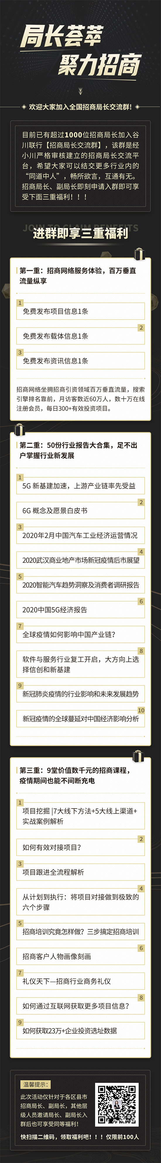 目前已有超过1000人入群,还没入群的招商局长赶快扫描下方二维码加入吧!