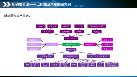 从前面的梳理来看,我们是以全产业链为建链目标,以电池和汽车轻量化作为强链的重点,以电机、电控作为补链的方向,以内饰、外饰作为延链的补充。这就是通过产业分析,形成了对新能源汽车产业招商的定位。