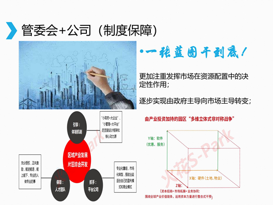我们的制度是基础是哪些制度保障呢?就是“管委会+平台公司”的一个基础,更加注重市场在资源配置中的一个决定性作用,逐步实现由政府主导向市场主导一个转变,一张蓝图干到底。再跟大家确认一句,签约只是招商的开始,我们一切工作的基点在企业,那么企业在签约之后,只是我们未来整个朋友圈一个圈层过程中的基点。