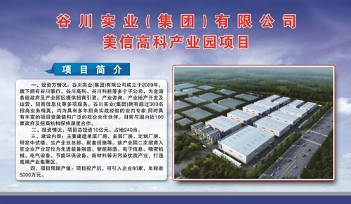 山东德州 · 谷川美信高科产业园总投资10亿元,占地240亩,位于德州东外环以西、天衢东路以北地块,建设内容包括在产业项目地块内建造单层厂房、多层厂房、定制厂房、研发中试楼、生产企业总部、配套设施等。该产业园二次招商入驻企业产业定位为先进装备制造、智能制造、电子信息、精密机械、电气设备、节能环保设备、新材料等无污染优质产业,打造高端产业集聚区。项目建成后预计引入企业80家,年税收5000万元。