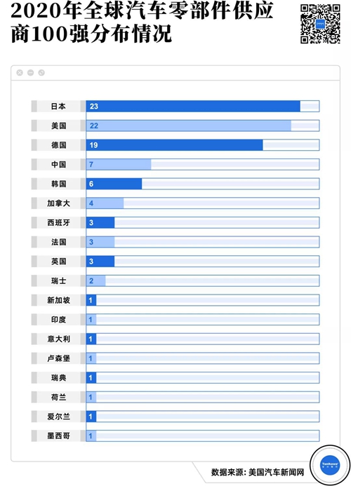 知名的汽车零部件品牌主要集中在北美、欧洲及日本,包括德国的博世和大陆、日本的电装、加拿大的麦格纳、美国的德尔福等。