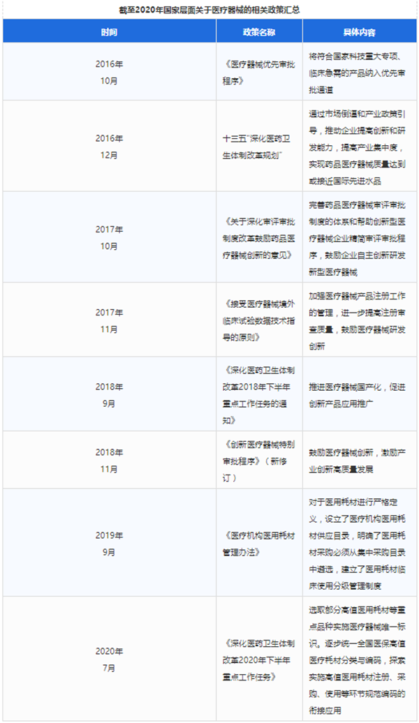 2016年以来,政府不断推出切实有效的政策和措施,进一步规范市场、鼓励投资和科技创新,为医疗器械产业发展提供了指导方向。