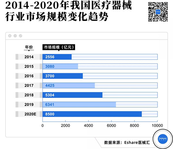 随着医疗保健的意识逐渐增强,人们对医疗器械产品的需求也在不断地攀升,再加上相关政策支持,使得我国医疗器械市场规模不断增长。