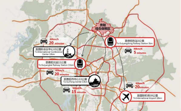 在交通方面,综保区临近贵阳东站,高速横贯,货运依靠都拉营国际陆海通物流港,同时距城市各个主要节点半小时通勤可达,区位优势明显。