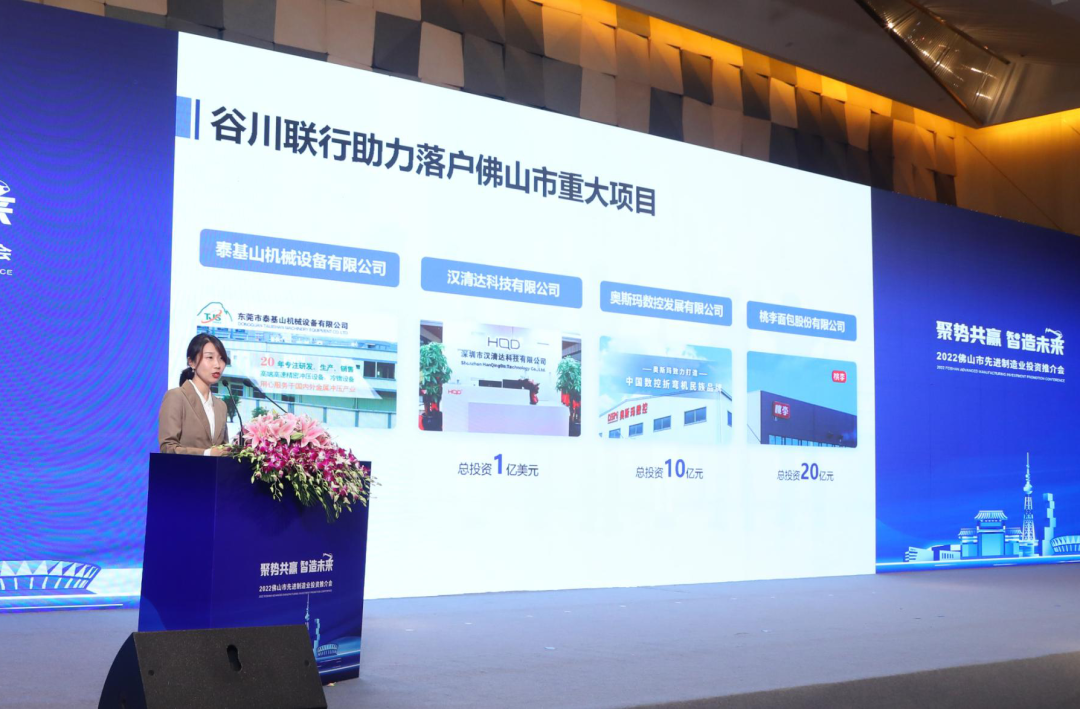 8月24日,由佛山市招商工作领导小组办公室主办,谷川联行协办的“聚势共赢 · 智造未来——2022佛山市先进制造业投资推介会”在苏州举行。