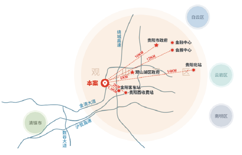 地处“黔中经济区”核心,拥有西南地区规模最大的综合性铁路枢纽——贵阳北站,汇集贵广、沪昆、成贵等多条高铁。同时,距贵阳龙洞堡国际机场车程仅35分钟,与全国多座城市形成8小时交通圈。