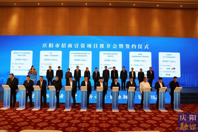 签约仪式上,镇原县年产20万吨纸类包装制品生产项目、正宁县食用菌及绿色蔬菜一体化生产基地建设项目、宁县“油改电”移动储能项目、西峰区陇东风情园书画创意区建设项目、庆城县米纽特新材料生产制造项目、龙源环县30万千瓦新能源项目、华池县南梁镇食品深加工产业园建设项目、合水县山海新能风电建设项目等12个项目成功签约,签约额76.44亿元。