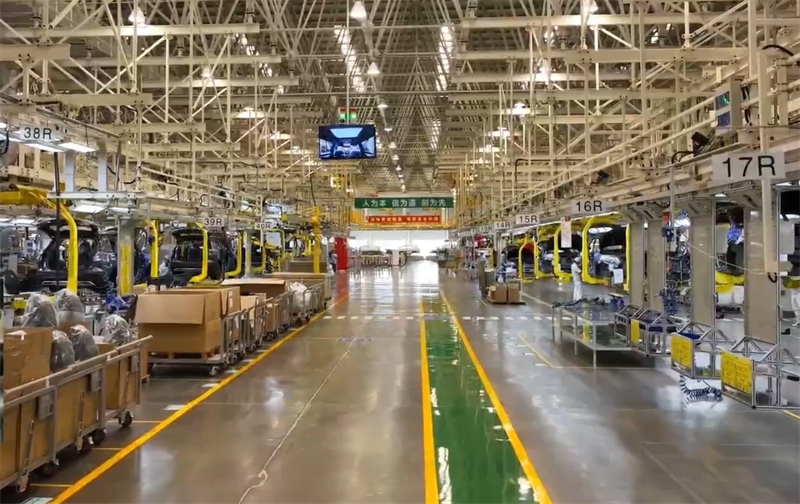 在陕汽新疆汽车有限公司的生产车间,各工位的自动机械臂、吊装设备等自由切换,平均每12分钟,一辆新能源重卡汽车就能生产下线。