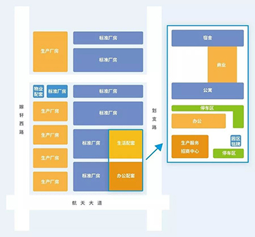 园区总占地约240亩(工业),总建筑面积约18.47万㎡,厂房总面积14.86万㎡。一期建设 3.51 万平米的配套服务楼,为整个产业园区提供生产以及生活综合型配套服务,包括食堂、人才公寓、超市、医务中心、会议中心、创新孵化中心、职工娱乐活动中心、咖啡厅、健身中心、企业产品展览馆、快递等全方位配套服务。